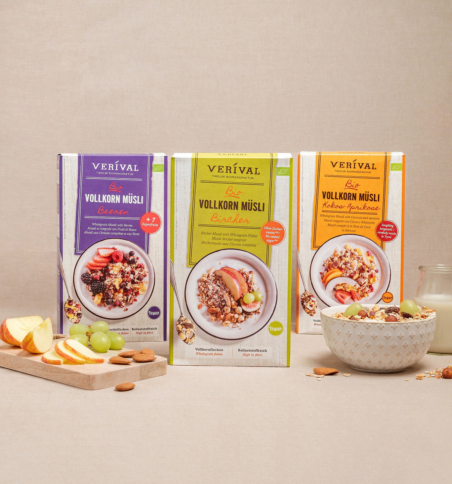 Do you know our muesli, granola and porridge to go? These small muesli packs are available from 40g and you can easily take them with you wherever you go. So if you need a quick snack on the go or at work, you have your Verival muesli to go to hand.