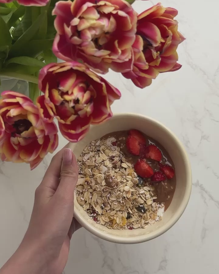 Pour fresh milk or plant-based drink over muesli, mix with yoghurt or use as a topping.